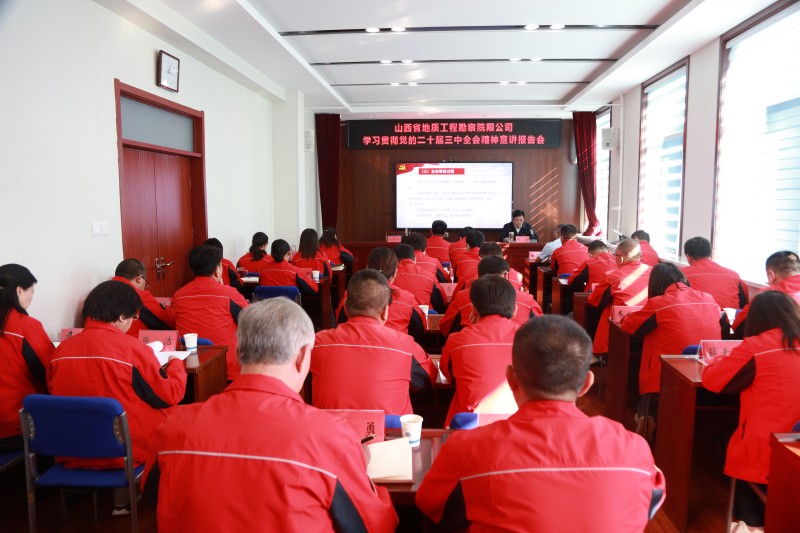 10月11日,地勘院有限公司召开学习贯彻党的二十届三中全会精神宣讲报告会。公司党委书记、董事长赵政宣讲党的二十届三中全会精神,党委副书记、副董事长、总经理施红政主持报告会。